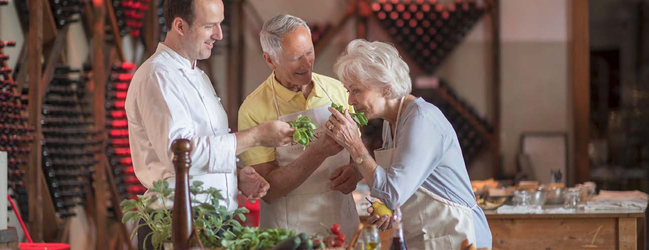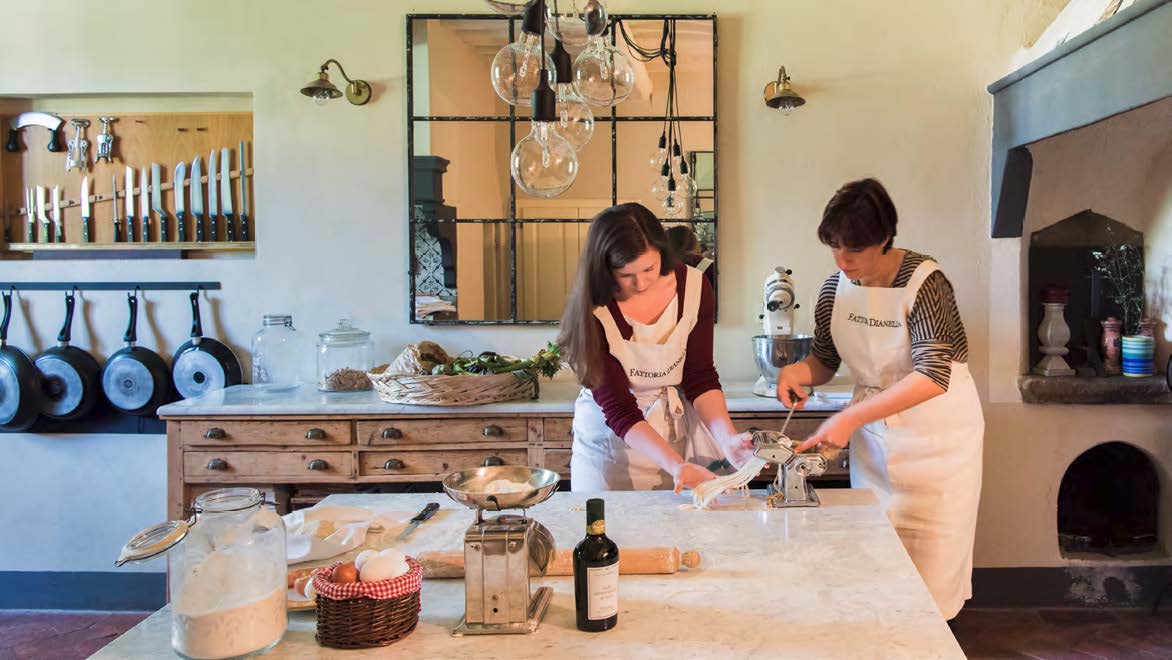 Those who prefer to observe rather than cook can choose the cooking show. Seated in front of the cooking station, guests watch Chef Alessio Bagnoli at work, take part in small preparations and then taste the dishes, paired with the estate’s wines.
