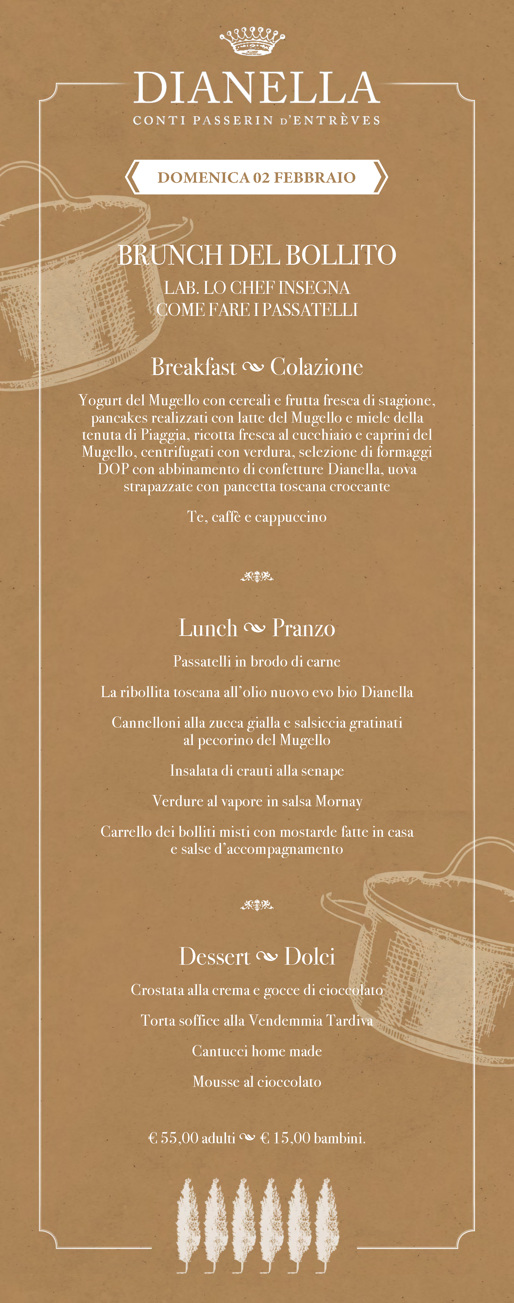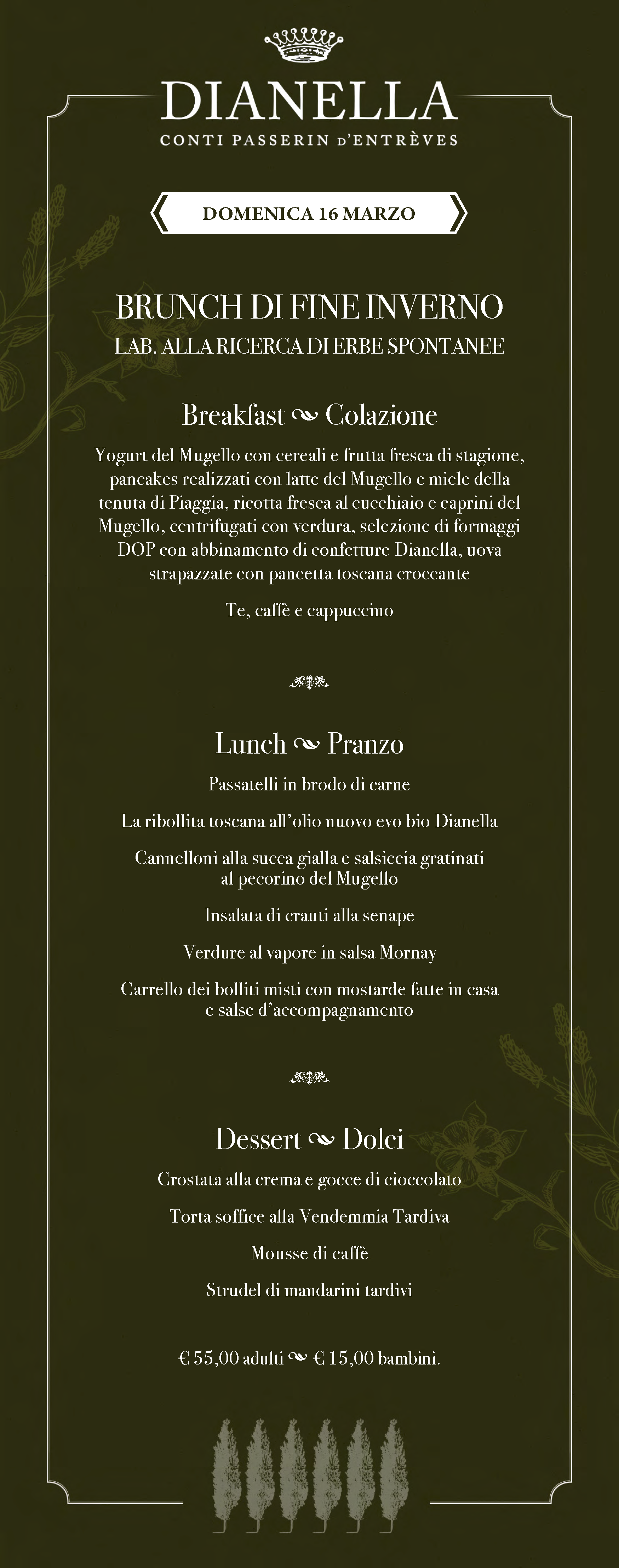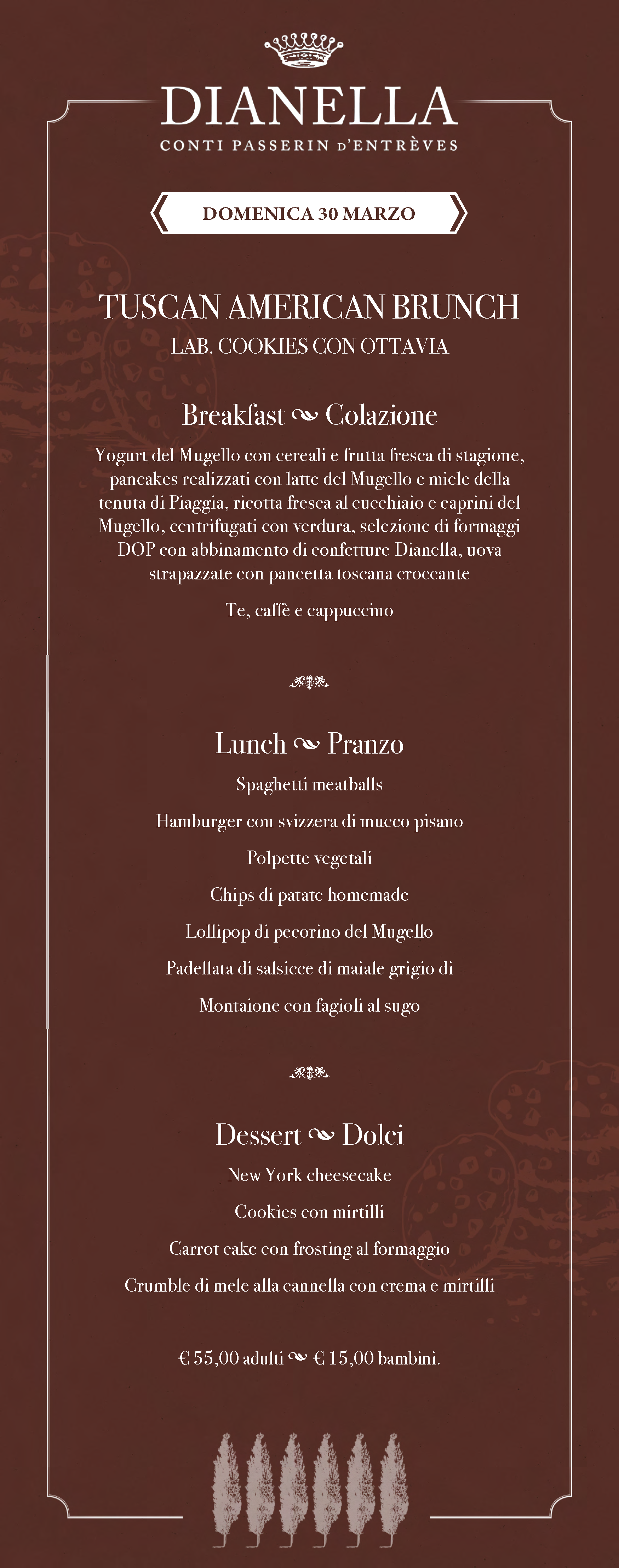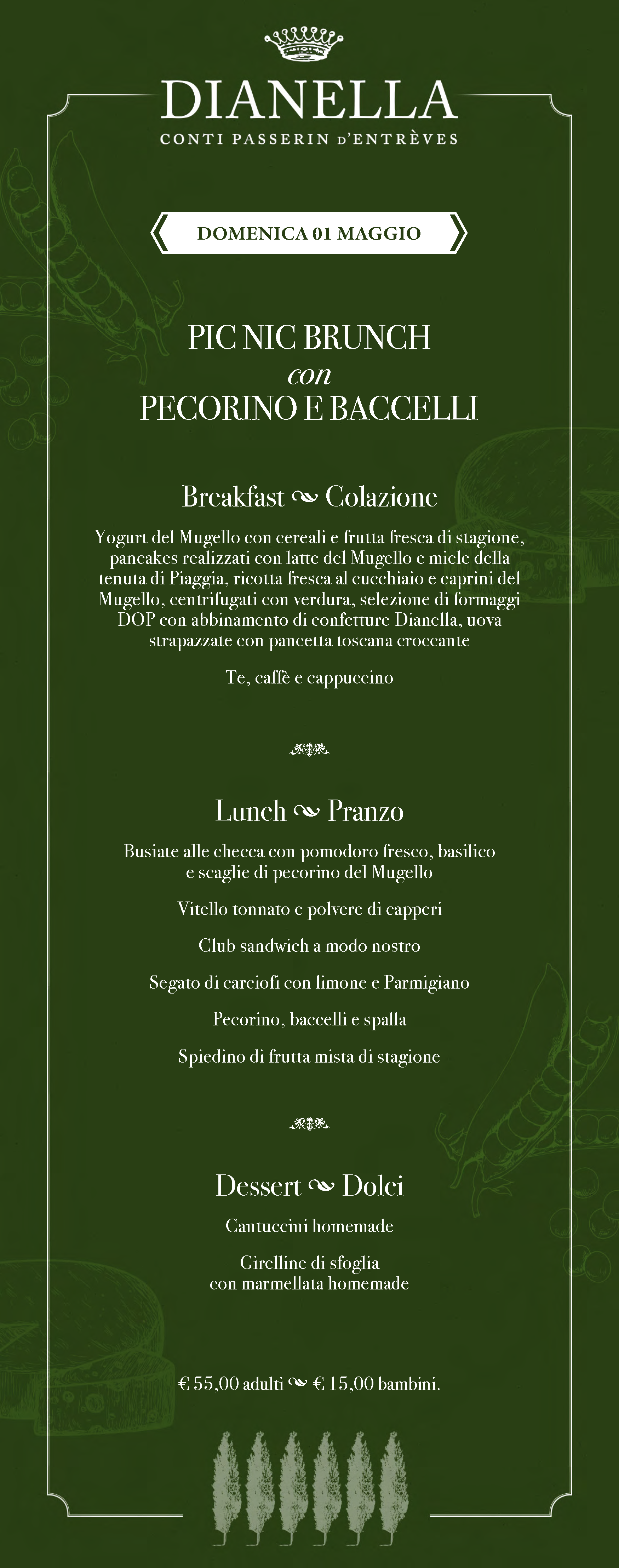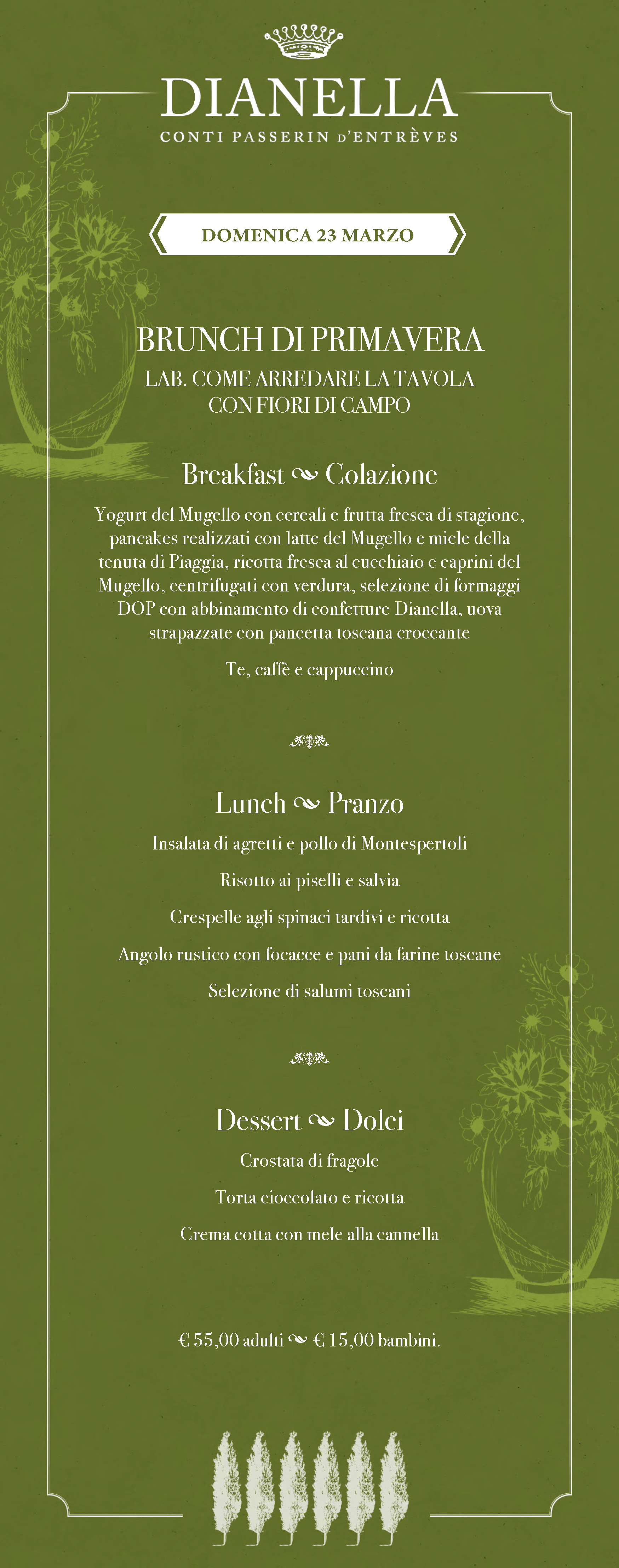 Un menu che varia ogni settimana, una location affascinante e un’atmosfera rilassata fanno dei brunch di Villa Dianella un’esperienza imperdibile, perfetta per famiglie, coppie e gruppi di amici. Che siate amanti della tradizione culinaria toscana o curiosi di provare nuove proposte, i nostri brunch sapranno sorprendervi e regalarvi momenti indimenticabili. Sono spesso previsti laboratori e iniziative creative per i ragazzi.