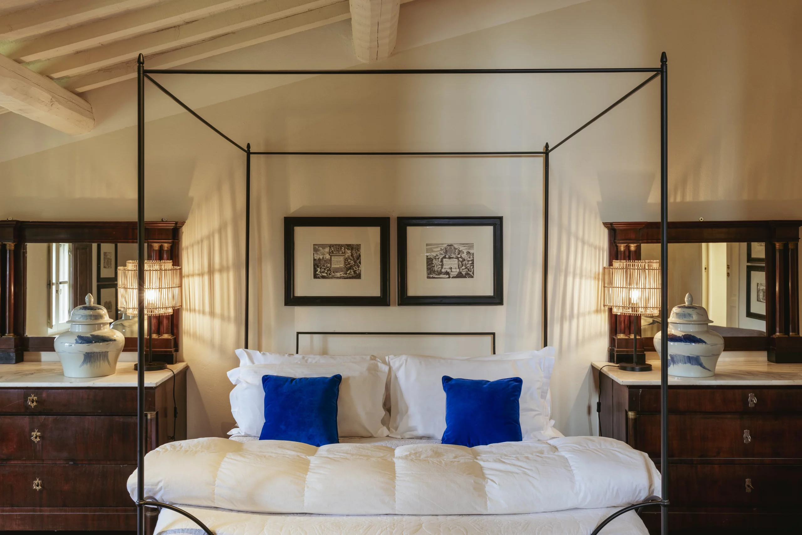 Camere ampie, generalmente con letto a baldacchino king size e zona living con eleganti salotti realizzati con tessuti pregiati e mobili antichi in stile con la villa. Tutte hanno una vista incantevole sul parco, sul giardino all’Italiana o sui vigneti della fattoria e una cantinetta refrigerata con la selezione dei vini Dianella. Massima la cura nella realizzazione dei bagni, ampi, avvolgenti con decorazioni leggere e materiali di grande pregio, dal marmo di Carrara, al cotto fatto a mano e pregiate maioliche. Le docce sono molto grandi ed alcuni bagni hanno anche la vasca o una seconda doccia.