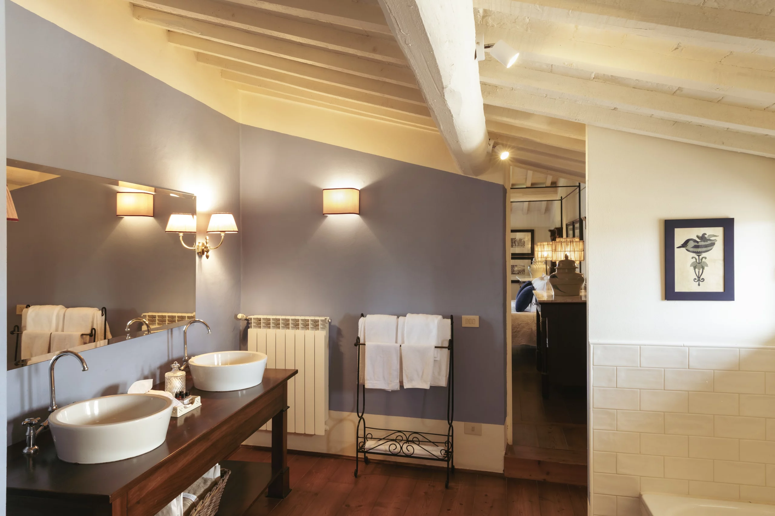 L’arredamento è essenziale, non banale e con un lusso misurato. Camere raffinate con colori sobri e rilassanti, tessuti pregiati e nuance diverse che rispettano le moderne esigenze, rendendo la stanza avvolgente e degna di un soggiorno indimenticabile. Immancabile la cantinetta refrigerata con una selezione dei vini dell’azienda per un aperitivo con un buon calice di vino Dianella. Stanze da bagno dagli arredi originali, con tutti i confort, ampie docce piastrellate con ceramiche fatte a mano.