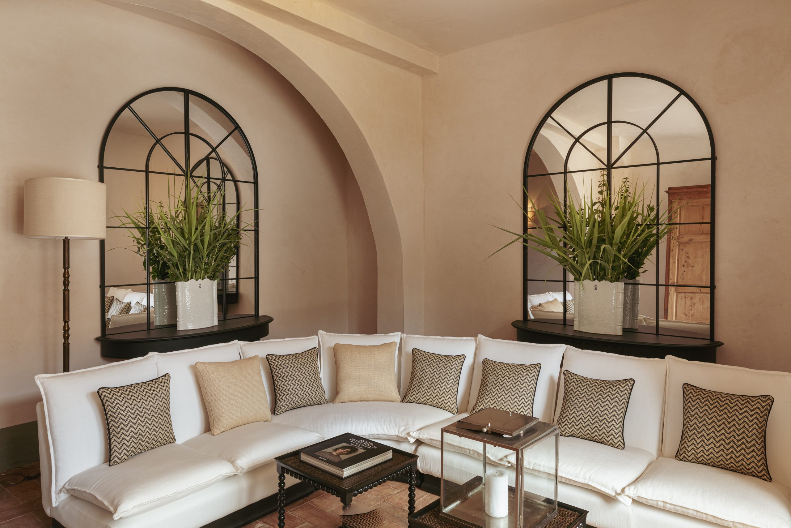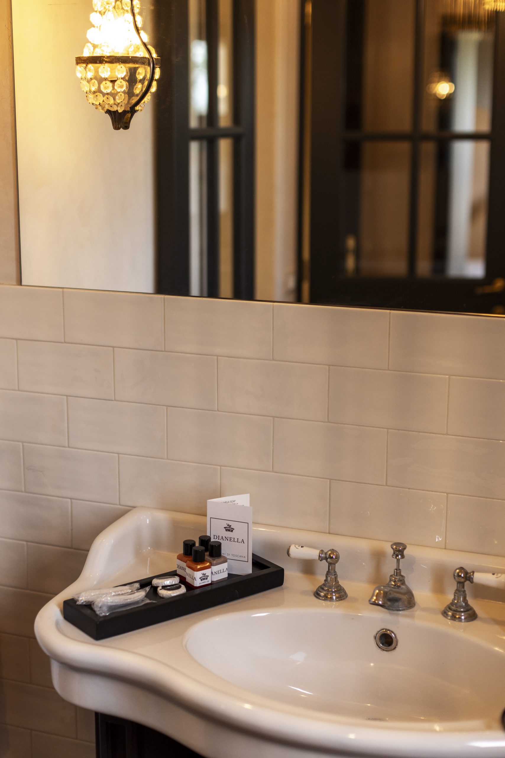 Camere enormi con salotto e ampie vetrate sull’esterno e specchi per replicarne l’atmosfera e i colori caldi in ogni angolo. I letti sono king size e con una vista magnifica sui vigneti e sulla campagna circostante a garanzia di riposo e relax fisico ed interiore. Le testate dei letti sono realizzate in paglia di Firenze con finiture uniche e originali e i pavimenti in cotto antico. I bagni sono ampi, tutti diversi, con illuminazione e lavabo dalla foggia originale. Nelle docce il mosaico in marmo si fonde con i flutti dei numerosi getti. A disposizione degli ospiti uno spazio esterno – terrazza o loggiato – dove gustare, nella pace del meriggio, un calice di Dianella dalla selezione di vini che si trova nella immancabile cantinetta di cui sono dotate tutte le stanze.