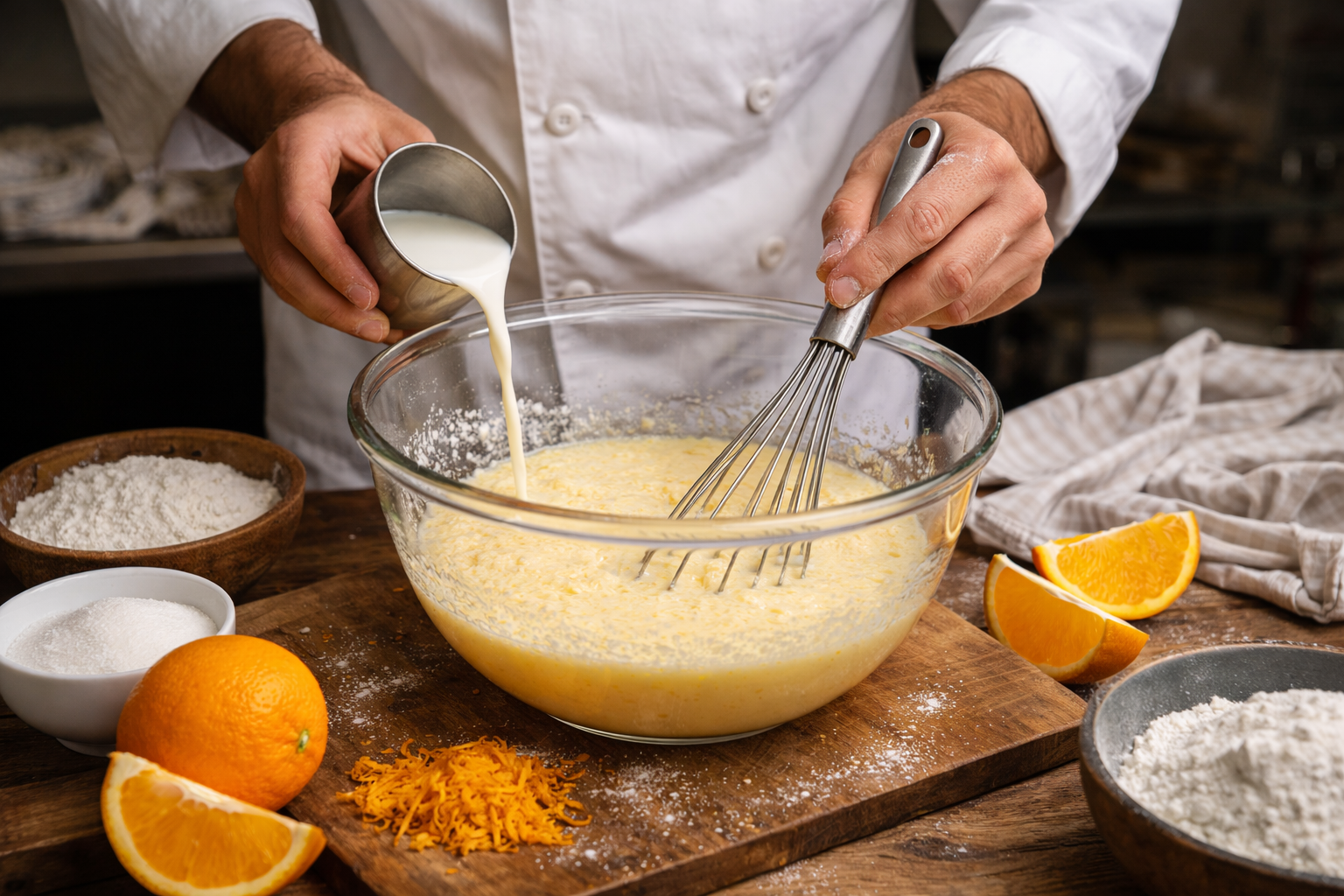- Incorporare il latte e la scorza d’arancia.