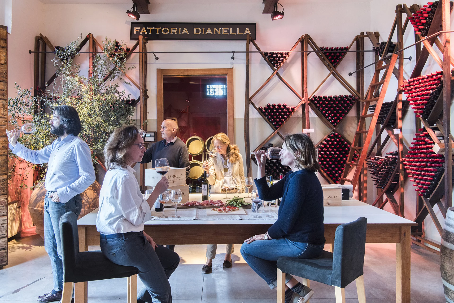 Visita guidata delle cantine storiche con degustazione di 3 vini Dianella e abbinamento di bruschette, salumi e formaggi toscani.