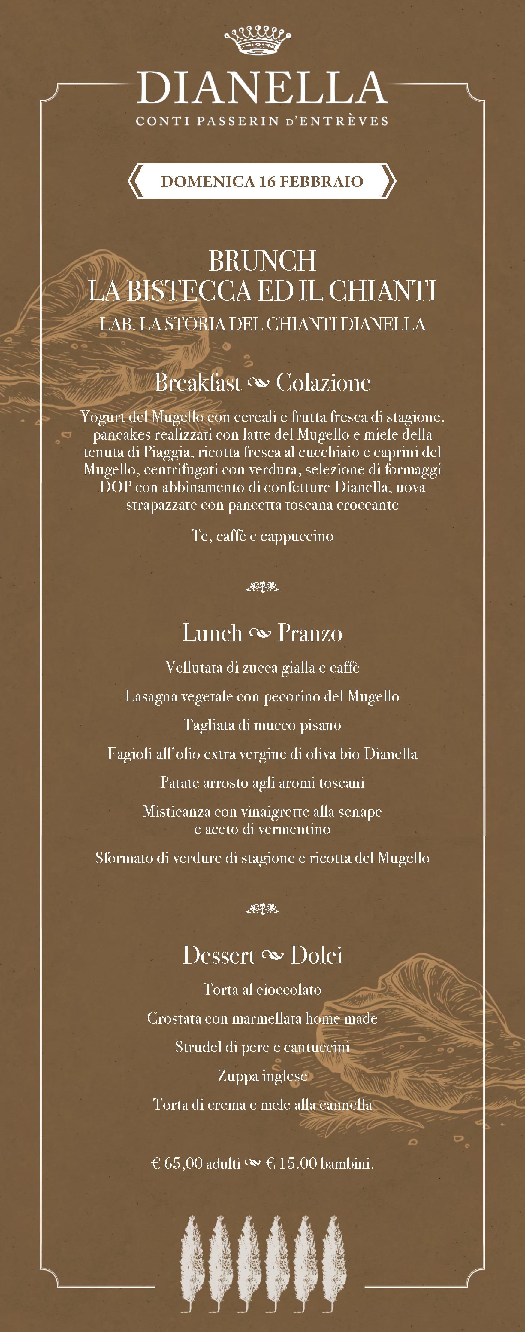 A Villa Dianella, ogni brunch è un’occasione speciale per vivere la bellezza e i sapori della Toscana in un contesto unico e raffinato. Ogni domenica, la nostre cantine storiche si trasformano in un punto d’incontro per chi ama il buon vino e la buona cucina e desidera trascorrere una giornata all’insegna del relax e della convivialità.